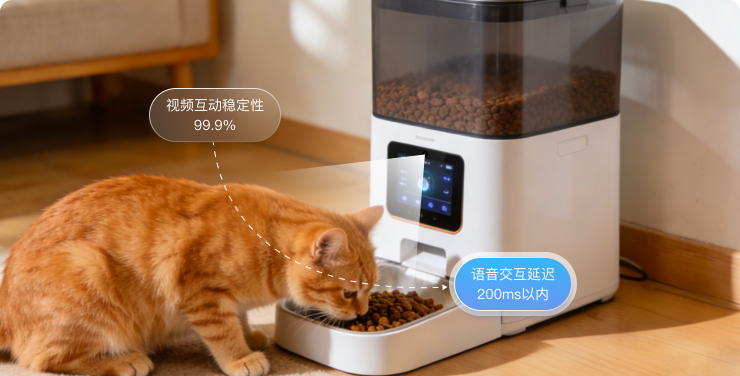 某宠物智能设备厂商采用AIRTC解决方案后,其喂食器产品的视频互动功能稳定性提升至99.9%, 语音交互延迟控制在200ms以内,用户留存率提高30%,产品复购率显著上升。